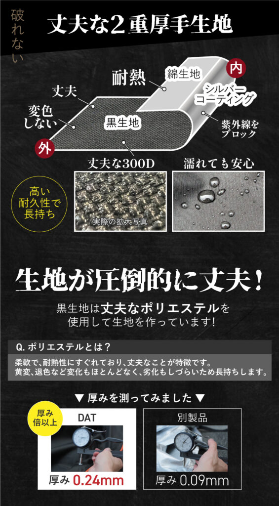 | 材質 | 生地:表 ポリエステル300D 裏:アクリルシルバーコーティング |