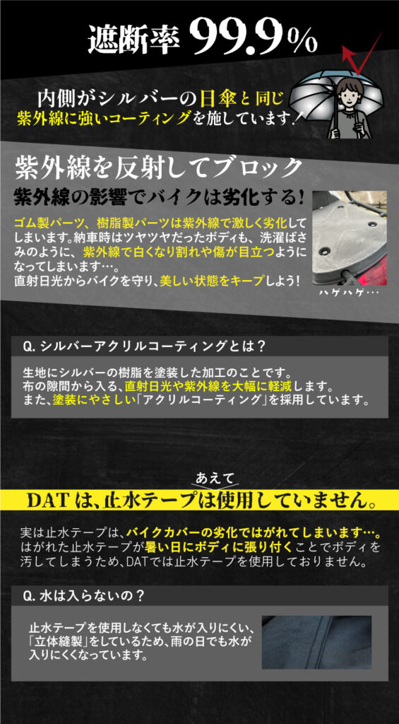 | 用途 | 紫外線によるバイクの劣化対策 盗難防止 バイクの保護 雨よけ ほこりよけ |