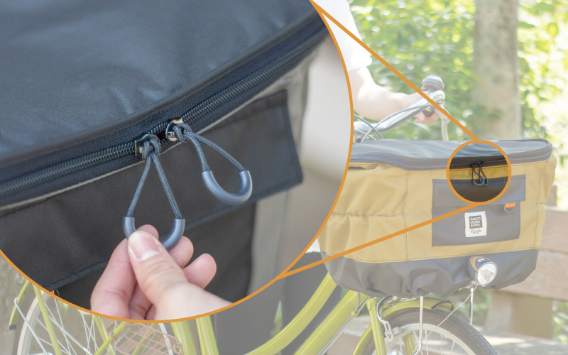 – カバーサイドのゴムで幅広いカゴに適合 –