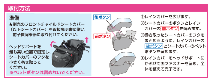 | 商品の特徴 | ・お子さまを乗せる際にはフタをくるくる巻いてボタンでとめるだけ。 ・お子さまが大きくなりチャイルドシートを「荷物入れ」として使用する際に「荷物カバー」として。荷物の雨除け・ほこりよけ・ひったくり防止に。 |