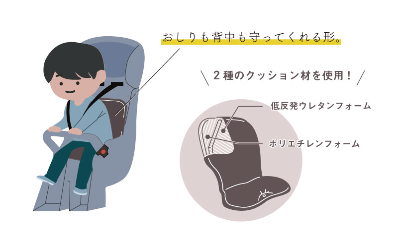| 商品の特徴 | ◇お子様のおしりの負担を軽減 ◇段差の「ガッタン」解消に ◇2種類のクッション素材使用で走行中の衝撃を吸収! |